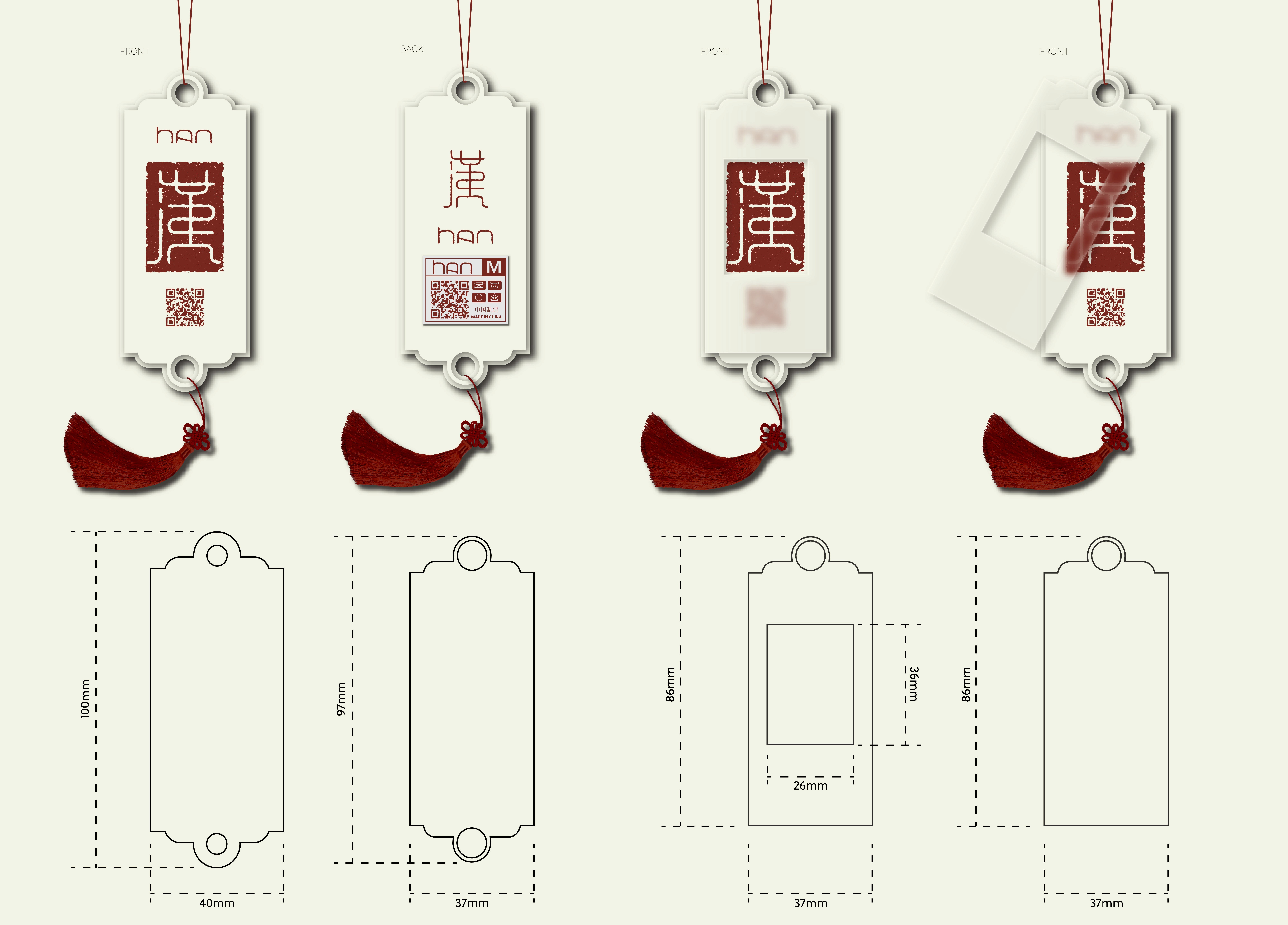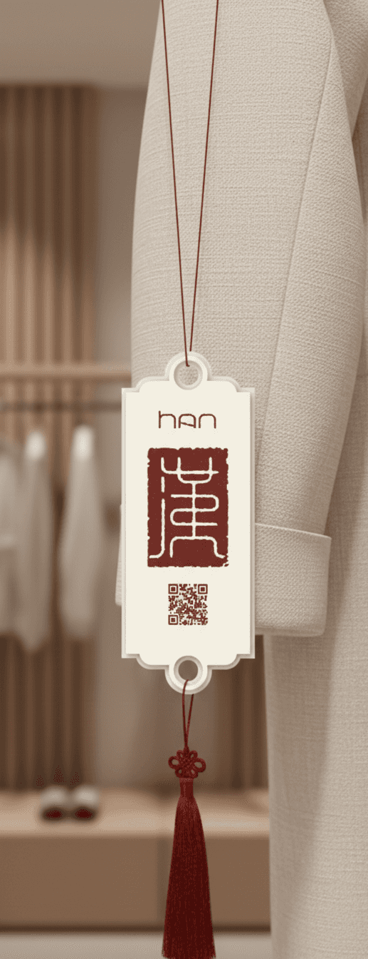Inspired by the silhouette of the ancient Chinese command tablet—a historic symbol of authority and identity—this hang tag transcends traditional packaging through a ritualistic interaction.