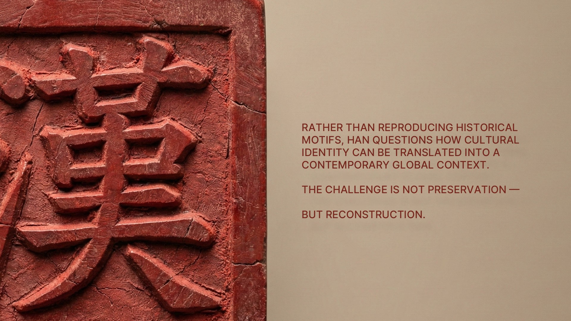 rooted in the depth of Han cultural heritage. I translate traditional Chinese symbolism into a rigorous, minimalist design language, reimagining ancient motifs for a discerning global audience.