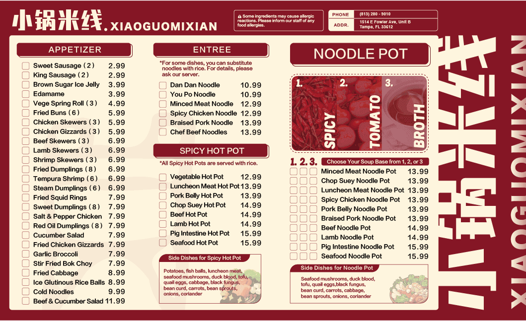 Noodle Menu
